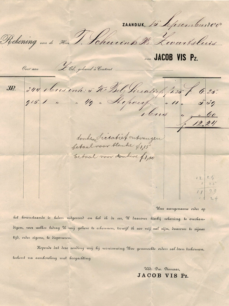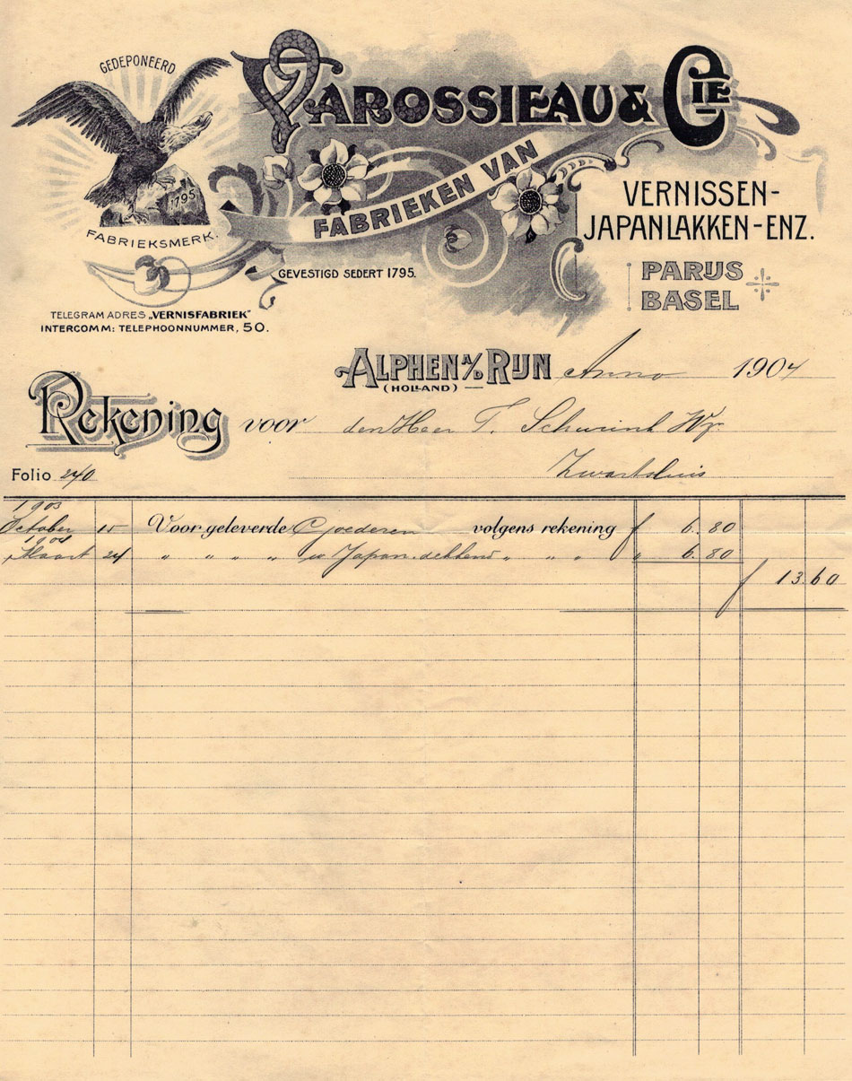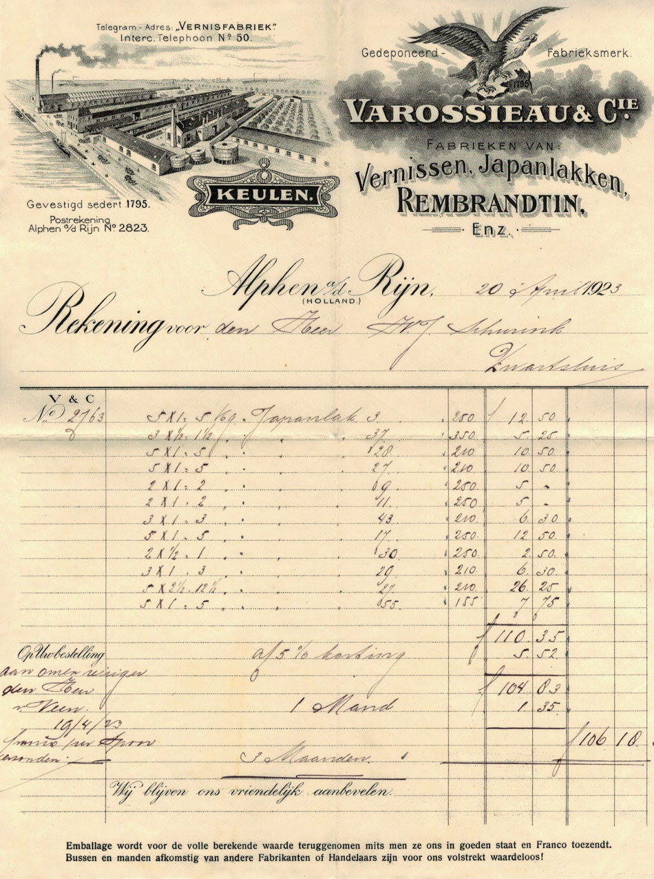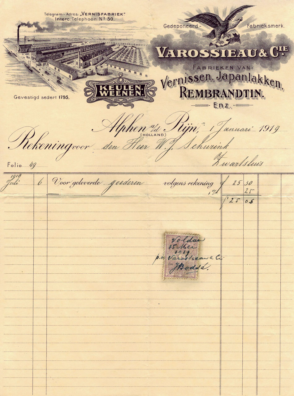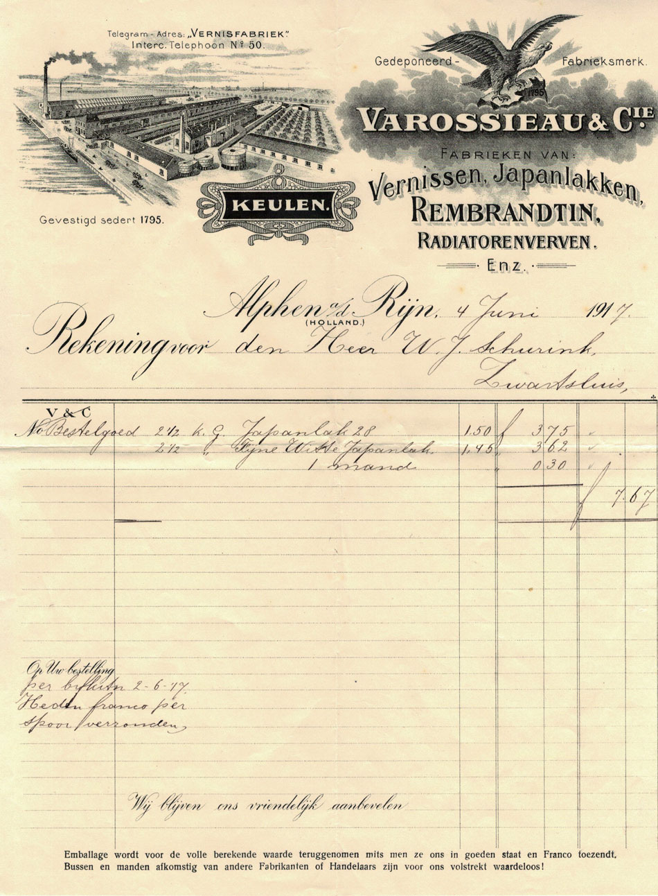 Zie ook vele verf gerelateerde oude rekeningen uit een archief van een schildersbedrijf