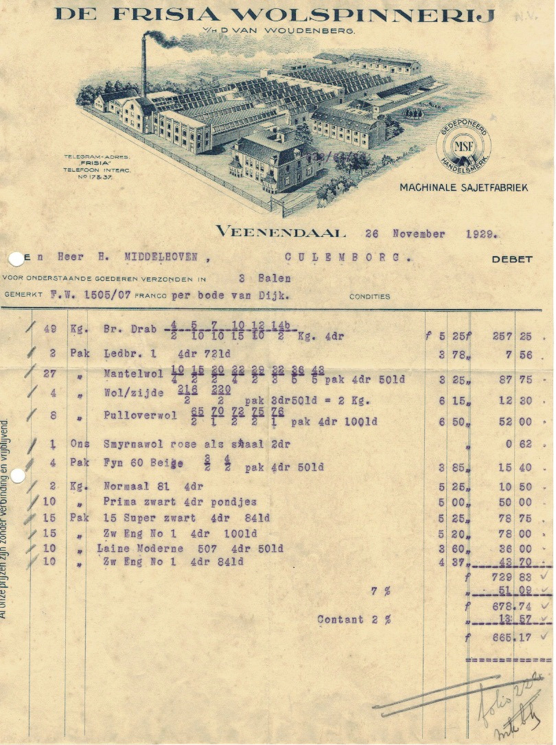 Brief uit 1940 met afbeelding der fabriekcompexen over de hele breedte der rekening, in heel nette conditie, div. malen gevouwen, prijs € 50.