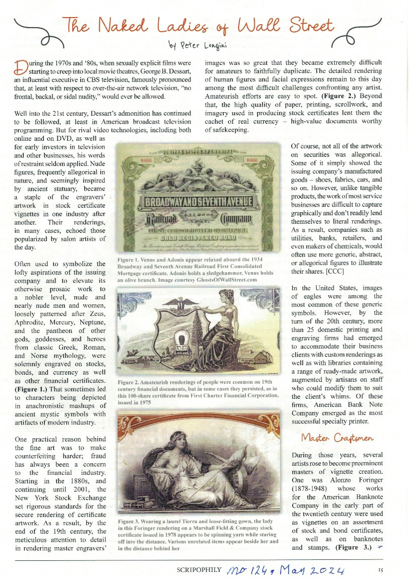 Peter Longini, "The naked ladies of Wall Street", Scripophily no 124, mei 2024 p. 15, (zie afbeeldingen op blz. 15, 16, 17, 18)